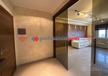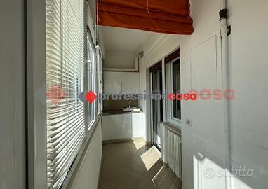 L'immobile è posto al quinto piano di una palazzina servita da ascensore ed è composto da: ingresso, soggiorno, cucina abitabile con veranda, studio con balcone, due camere da letto e due bagni.