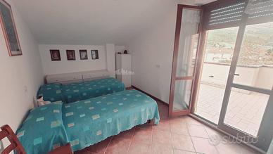 L'appartamento si compone di ingresso su ampio soggiorno, angolo cottura a vista, terrazzo di 20 Mq lato est con parziale vista mare, ed uno dalla camera matrimoniale lato sud, dispone di due camere da letto, una matrimoniale e una doppia, con leggere spiovenze, che non pregiudicano l'intera fruibilità degli spazi. Inoltre, ci sono due bagni, uno con vasca, uno con doccia, entrambi finestrati.