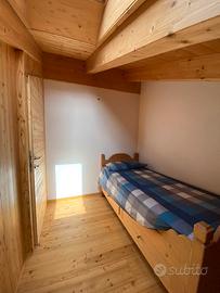 Situato all'interno di un condominio di recente costruzione, l'appartamento su due livelli è composto da cucina e soggiorno open space, bagno, camera da letto matrimoniale con bagno privato e camera singola. Le ampie finestre e le due terrazze offrono un'ottima vista sulle montagne circostanti.