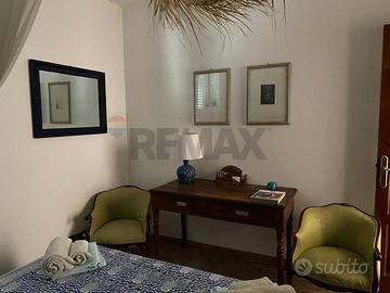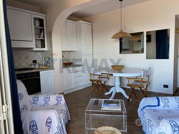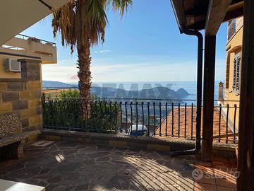 Ampio e luminoso appartamento composto da ingresso/disimpegno, due camere, un bagno, un ripostiglio e un comodo soggiorno/pranzo/cucina, che si apre su un grande terrazzo con straordinaria vista panoramica della costa tirrenica della Sicilia. L'appartamento viene venduto in gran parte arredato. Completa l'immobile una grande corte privata che, grazie alla presenza di un ingresso pedonale e di un ingresso carrabile, consente il parcheggio di più automobili. Nella porzione della corte prospiciente l'ingresso all'appartamento è anche presente una comoda tettoia per godere di piacevoli momenti all'aperto anche nel corso delle calde e assolate giornate estive.