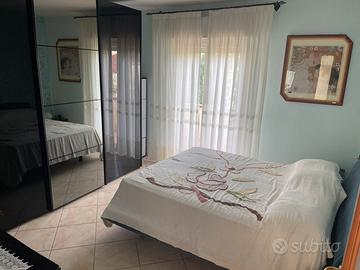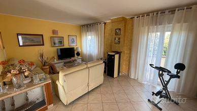 Vendesi luminosissimo appartamento capo schiera, al primo ed ultimo piano di un mini condominio edificato nel 2002. Ingresso indipendente, ampio salone di 28 mq con accesso a balcone di circa 15 mq, comoda cucina a vista di 14 mq con accesso a balcone di 5 mq, zona notte separata da disimpegno in cui troviamo un bagno finestrato di 7 mq con vasca, un bagno cieco di circa 5 mq con doccia, due camere di cui una matrimoniale di 15 mq con accesso al balcone del salone ed una singola di oltre 10 mq con balcone dedicato. Comodo sottotetto per tutta la superficie dell'appartamento. Caldaia a condensazione Ariston appena installata. Sono di esclusiva pertinenza un giardino/cortile di oltre 100 mq con pergola ed alberi da frutto, ed un garage di 15 mq. Infissi in pvc bianco con tapparelle elettriche, riscaldamento a gas condominiale, in aggiunta una efficientissima stufa a pellet idro ed un condizionatore caldo/freddo di recente installazione nel salone. NO AGENZIE