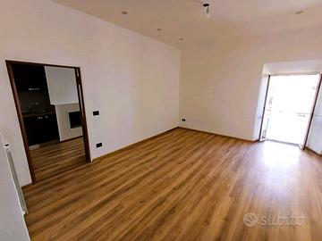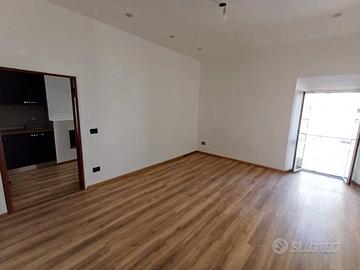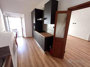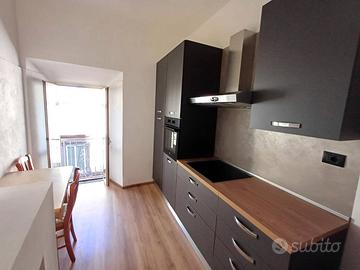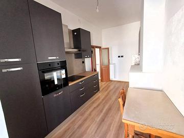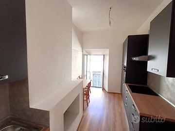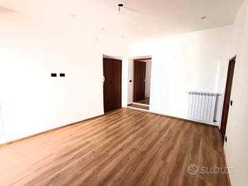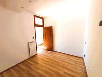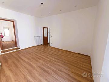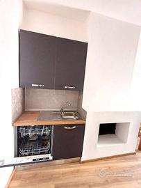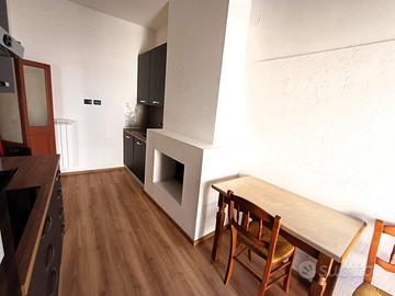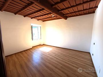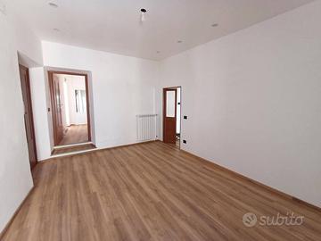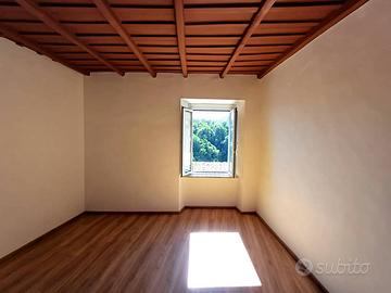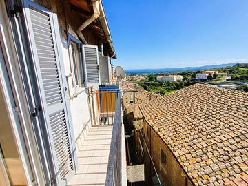 Si accede in un soggiorno con affaccio sul corso principale e la sua peculiarità è una porticina che da accesso ad un ripostigio con finestra e ad un'ampia soffitta composta da 2 ambienti con finestra. La cucina, anch'essa con affaccio sul corso è munita di camino ed è dotata di mobilia nuova con piano cottura a induzione, lavastoviglie e frigorifero. Un corridoio con ampio balcone panoramicissimo ci conduce alla zona notte composta da camera da letto con affaccio sulla vallata e soffitti con travi in legno a vista, cameretta, bagno con piatto doccia in resina a filo pavimento. L'immobile è munito di impianto per riscaldamento autonomo a gas metano.