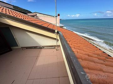 Al primo piano è presente appartamento, composto da due camere da letto, un bagno, un ripostiglio e una cucina-soggiorno open space con terrazzo a livello che regala una vista mozzafiato sul mare.