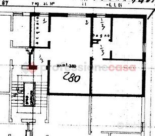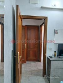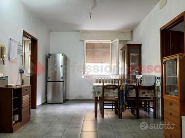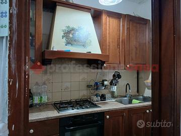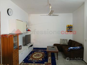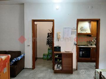 L'immobile, al 1° piano senza ascensore, è così disposto: ingresso, soggiorno singolo con cucinotto, 2 camere da letto, di cui una matrimoniale e una tre quarti, un bagno ed un garage al piano terra.