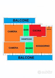 Appartamento trivani con due bagni. Proponiamo in zona semi-centrale e comodamente servita, un comodo appartamento di tre vani al primo piano della superficie catastale totale di 74 mq, composto da ingresso su salone, cucina semi-abitabile, due bagni, due comode camere da letto, doppia esposizione. Completa la soluzione un doppio posto auto al piano interrato. Alcuni dettagli: infissi in PVC; tapparelle elettriche.