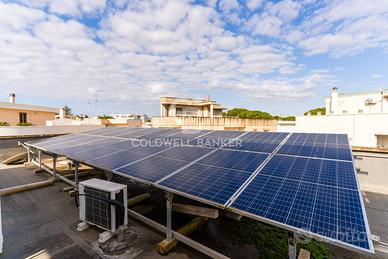 Lintero stabile è stato oggetto di una riqualificazione energetica, che comprende impianto fotovoltaico condominiale con accredito diretto per ogni unità, pannelli solari termici e infissi nuovi in PVC con doppio vetro e tapparelle elettriche. Lappartamento è inoltre dotato di due condizionatori e di impianto di riscaldamento con radiatori in alluminio, alimentati da caldaia a gas metano collegata alla rete pubblica. La produzione di acqua calda sanitaria avviene tramite un sistema combinato solare termico e gas.