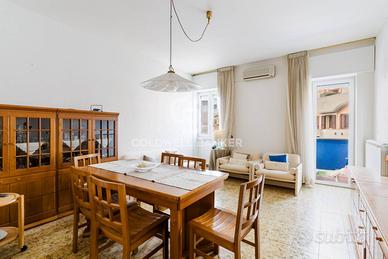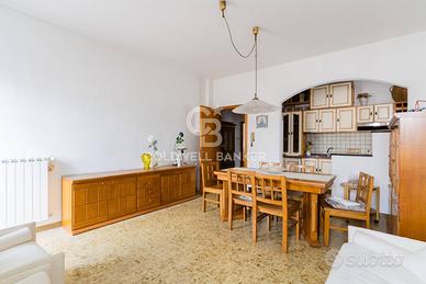 Limmobile, di circa 90 mq, si presenta ben distribuito e accogliente: un luminoso soggiorno con cucina open space, due comode camere da letto e un bagno ampio. Un balcone affaccia sulla strada principale, mentre un secondo balcone angolare regala una piacevole vista sul giardino condominiale, offrendo uno spazio ideale per momenti di relax.