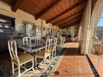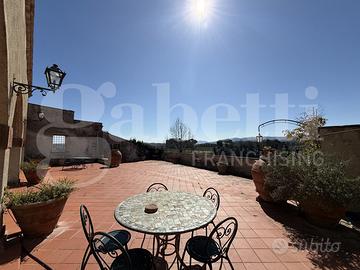 L'appartamento del primo piano invece ci accoglie con una VISTA PANORAMICA MOZZAFIATO dalla splendida terrazza abitabile di oltre 150 mq su cui affaccia una suggestiva zona giorno di cc 80 mq con vetrate ad arco e camino. La cucina abitabile rimane separata e un ulteriore salotto può essere adibito anche a studio. Nella zona notte troviamo 3 camere ampie e doppi servizi.