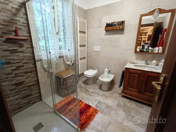 L'immobile è così composto: accesso da un porticato di proprietà, ingresso in soggiorno , cucina aperta , bagno ristrutturato di recente, giardino e balcone al pian terreno, primo piano con due camere e servizi, portico adibito a lavanderia, nel piano mansardato troviamo tre spazi adibiti a camere ed ulteriore servizio.