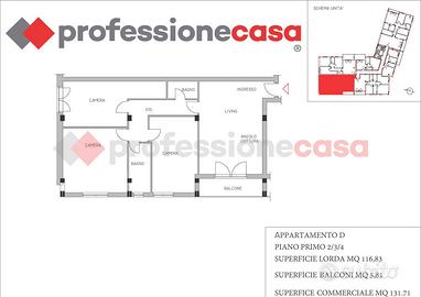 Tipologia QUADRILOCALE, composizione: ingresso in soggiorno con cucina a vista, 3 camera da letto, 2 bagni e balcone.