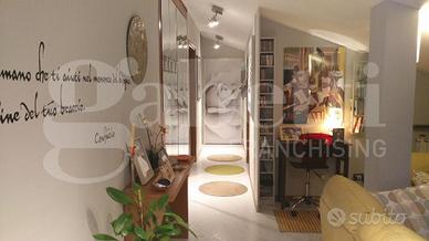 L'appartamento, mansardato, si sviluppa su un unico livello, è composto da un ampio ingresso che ci porta nel soggiorno con balconcino antistante, due camere da letto di cui una con cabina armadio, cucina abitabile e bagno con doccia e finestra.