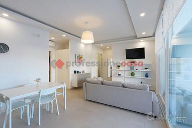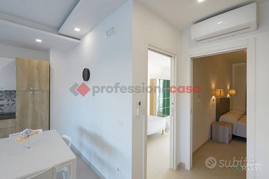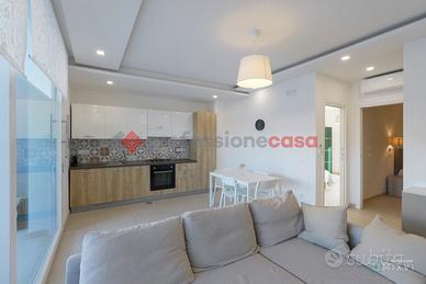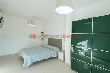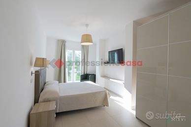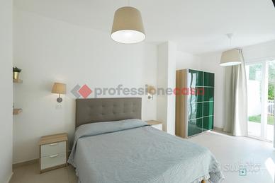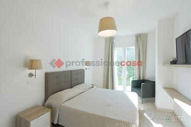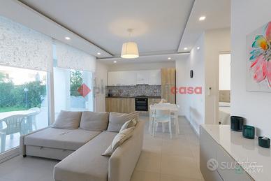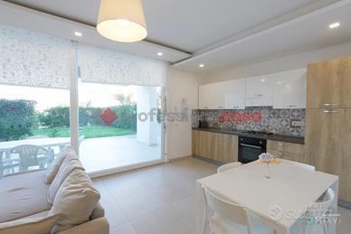 Gli ambienti si distribuiscono armoniosamente tra una luminosa zona giorno, due camere accoglienti e due bagni moderni, mentre la cucina abitabile si apre su un giardino privato, il luogo perfetto per colazioni all'aperto e momenti di relax avvolti dal profumo della brezza marina.