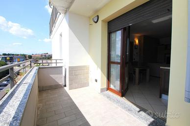 Immagina di entrare in un ampio e luminoso soggiorno con cucina a vista, da cui si accede a un delizioso terrazzo perfetto per momenti di relax all'aria aperta. La zona notte, ben separata, ti accoglie con un bagno e una camera matrimoniale di generose dimensioni, ideali per il tuo benessere quotidiano.