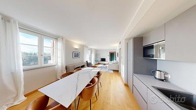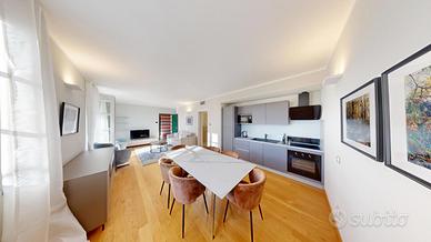 L'immobile, completamente arredato con gusto e grande attenzione ai dettagli, è pronto per essere abitato. Dotato di citofono e servizio di portineria, garantisce privacy ed esclusività. Il sistema di riscaldamento e climatizzazione assicura un elevato livello di comfort in ogni stagione, mentre il box auto rappresenta un valore aggiunto in termini di praticità.