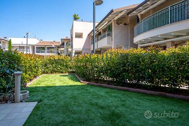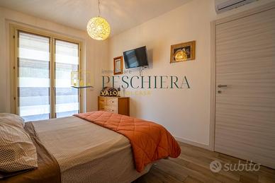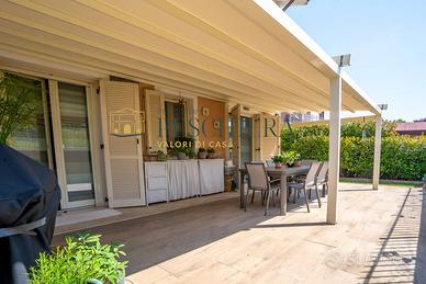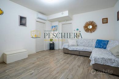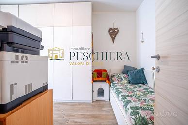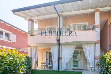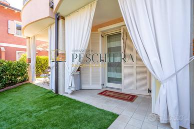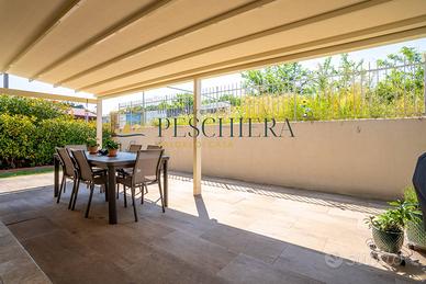 Rif: P 27.05 Classe energetica: A1 - EPglnr: 83.66 kWh/m² Castelnuovo del Garda, sulla linea di confine con Peschiera del Garda, in zona panoramica comoda al lago e a tutti i servizi, proponiamo elegante trilocale al piano terra libero su tre lati con giardino esclusivo e due autorimesse. L'immobile si trova all'interno del rinomato residence con piscina "Quadrivium" ed è così composto: ingresso indipendente, ampio portico coperto, soggiorno, cucina separata, disimpegno, bagno finestrato, due camere matrimoniali, entrambe con accesso al plateatico coperto. Completano la proprietà due autorimesse singole al piano interrato. L'appartamento presente diverse finiture quali: elegante pergola marca Gibus con tetto apribile e luci led, boiler elettrico 80 L a basso consumo, il quale rende l'immobile totalmente indipendente in caso di mancato funzionamento del sistema condominiale, coperto da armadio in ferro e legno realizzato su misura. Riscaldamento centralizzato a pavimento, aria condizionata, impianto d'irrigazione automatico ed indipendente, piantumato su tutti i lati, prato sintetico, plateatico retrostante con piastre galleggianti in gres porcellanato lavabile. L'immobile viene venduto parzialmente arredato. Libero ad Ottobre 2025. Questa soluzione rappresenta un' opportunità sia come prima casa, sia come casa vacanza o investimento turistico, grazie alla vicinanza al lago e ai celebri parchi divertimento quali Gardaland, Movieland e Caneva. La zona è ben collegata e offre numerosi servizi tra cui negozi, ristoranti e scuole. Inoltre, la presenza di piste ciclabili e percorsi pedonali permette di esplorare i dintorni. Potete contattarci senza impegno per ottenere maggiori informazioni o per prenotare una visita per questo appartamento a Castelnuovo del Garda. Possibilità di mutuo a condizioni agevolate. La nostra consulenza ti consente di individuare il prodotto più adatto alle condizioni economiche più vantaggiose. Contattateci o scriveteci...