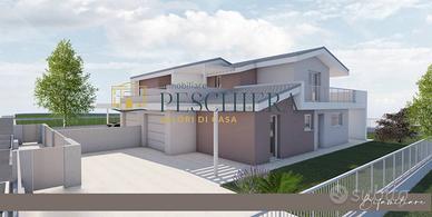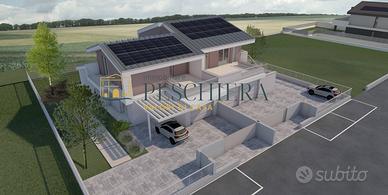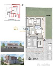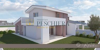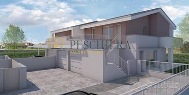 Rif: P 27.54 PT Classe energetica: A4 Nel cuore della tranquilla frazione di Sandrà, a Castelnuovo del Garda, allinterno di una nuova e curata zona residenziale, proponiamo un elegante trilocale al piano terra con ampio giardino privato, ideale per chi desidera vivere in un contesto moderno e riservato, immerso nel verde ma comodo ai principali servizi. Labitazione sarà parte di un esclusivo complesso di sole tre unità abitative, progettato per garantire privacy, comfort e qualità costruttiva. Il trilocale si sviluppa interamente su un unico livello, con ingresso indipendente che conduce al portico e al giardino di proprietà, perfetto per godere di momenti di relax allaperto o per organizzare cene conviviali nelle stagioni più miti. Linterno si apre su una luminosa zona giorno con soggiorno e angolo cottura, ben distribuiti e pensati per offrire funzionalità e accoglienza. Un comodo ripostiglio e un bagno completano questa prima parte della casa, mentre un disimpegno conduce alla zona notte, composta da due spaziose camere matrimoniali e da un secondo bagno finestrato. La proprietà include un garage singolo al piano terra, direttamente collegato allabitazione per garantire praticità e sicurezza, oltre a un posto auto scoperto riservato. Dal punto di vista impiantistico, limmobile sarà dotato di riscaldamento autonomo a pavimento alimentato da pompa di calore, con impianto fotovoltaico dedicato per la produzione di energia elettrica, a conferma dellattenzione verso lefficienza energetica e la sostenibilità ambientale. Le finestre e le porte-finestre saranno realizzate in PVC rigido, con predisposizione per linstallazione di zanzariere ove possibile, mentre il portoncino dingresso sarà blindato, a garanzia di sicurezza e protezione. Questa soluzione rappresenta unopportunità ideale per chi cerca una casa nuova, funzionale e ben rifinita, in una zona residenziale in espansione, perfetta sia come abitazione principale che come...