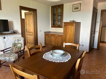L'appartamento ultimato invece, si compone di ingresso a destra del quale c'è un locale che può essere adibito a studio; salendo alcuni scalini entriamo nella cucina/sala da pranzo corredata da un camino a legna che comanda tutto il riscaldamento e l'acqua sanitaria. le camere da letto sono 2, una matrimoniale e l'altra doppia. Completano questo piano un disimpegno e un ampio bagno finestrato con doccia.