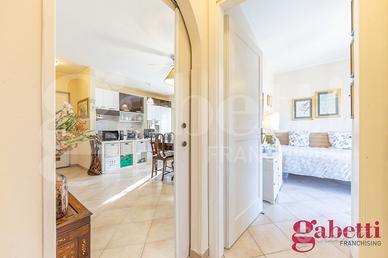 La casa ha una comoda distribuzione interna con netta separazione tra zona giorno e zona notte ed una fantastica doppia esposizione, Sud e Ovest, con affacci aperti; i pavimenti sono in grès porcellanato, infissi in legno/doppiovetro, condizionatori ed è termoautonomo.