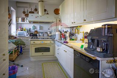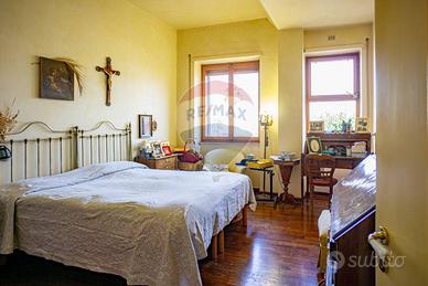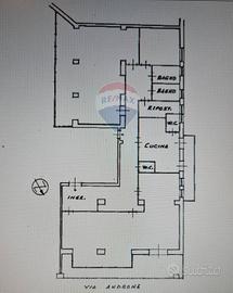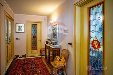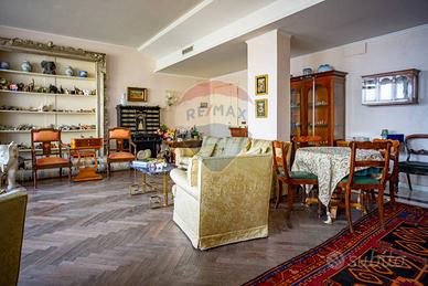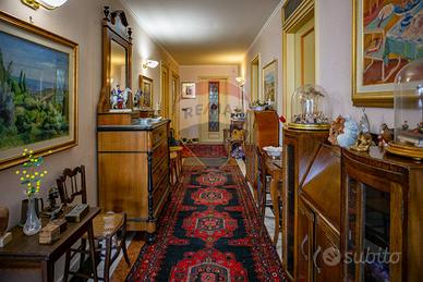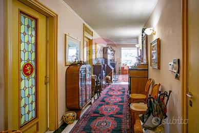 L'ingresso principale si apre su un grande e panoramico salone triplo con affaccio sulla via Androne, dal quale abbiamo accesso ad un terrazzino parzialmente chiuso da una vetrata che lo rende vivibile anche in inverno e permette alla luce di inondare la stanza. Un grande corridoio ci accompagna nel resto della casa dove le porte antiche con inserti in vetro decorato e gli armadi a muro, rendono funzionale ogni spazio. Da qui accediamo al secondo ingresso, alla cucina abitabile con isola divisa in due ambienti da una grande porta a scomparsa, due camere da letto, un bagno antico nobiliare e altri tre di servizio e un ulteriore salone triplo anch'esso con grandi vetrate.