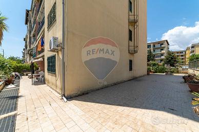 L' immobile si sviluppa al piano rialzato di una palazzina ben tenuta e si compone di grande salone di rappresentanza all' ingresso con annesso angolo studio che sfocia in un primo scorcio di terrazzo, spaziosa cucina di circa 30 mq anch' essa con uscita su una seconda parte di terrazzo. Un corridoio disimpegna mente la zona notte che vanta ben tre camere da letto e due servizi igienici.