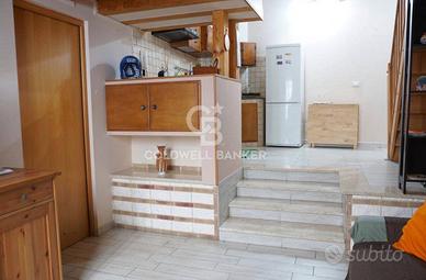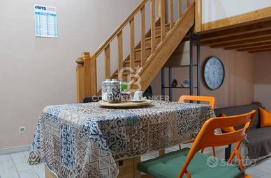 A rendere questo spazio ancora più affascinante e funzionale, una scala in legno porta a un soppalco che ospita una camera da letto di gusto raffinato e un ulteriore bagno.
