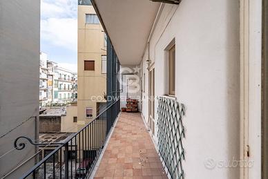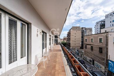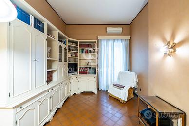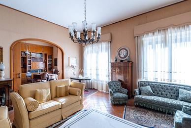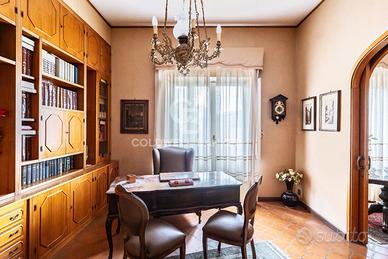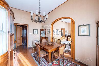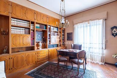 Varcato lingresso, si accede a un comodo e luminoso vano studio che conduce a un salone triplo con affaccio terrazzato su Via Pola.