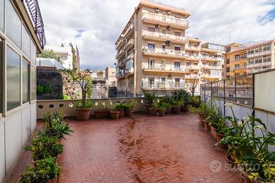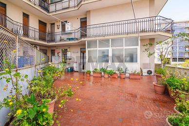 Rif: 30721570-59 Classe energetica: G APPARTAMENTO 3 VANI CON 2 AMPI TERRAZZI e POSSIBILITA' DI GARAGE Via G. Vagliasindi - Catania Presentiamo immobile di 100 mq interni con due ampi terrazzi di pertinenza di 40mq ciascuno. Inoltre sarà possibile acquistare un utilissimo Garage di 15mq al prezzo di 25.000. L'immobile è posto al primo piano, con doppio ascensore, di un condominio ben curato e provvisto di servizio portineria. Varcata la porta d'ingresso troviamo subito un comodo guardaroba, percorrendo il corridoio vi è il servizio principale con Box doccia, pochi passi e veniamo accolti dal soggiorno dove abbiamo il primo accesso al terrazzo che dà sulla Via G. Vagliasindi. Adiacente al soggiorno vi è la Cucina e il secondo terrazzo sul quale vi è un'ampia veranda utilizzabile come lavanderia. Termina l'immobile la zona notte composta da 2 Camere e un Bagno anch'esso con box doccia. Grazie alla presenza di numerose finestre e alla sua esposizione l'immobile gode di un' luminosità e ariosità, infissi in alluminio con doppio vetro camera e cancelletti in ferro. Riscaldamento autonomo con Termosifoni e metano per garantirvi l'ideale clima invernale. Inoltre vi è la possibilità di acquistare un comodo Garage (posto nel condominio di fronte) di 15 mq con soli 25.000. POSIZIONE GEOGRAFICA La Via G. Vagliasindi risulta essere una zona altamente strategica, oltre che signorile, grazie alla vicinanza con la Circonvallazione e lo svincolo dell'Autostrada oltre ad essere ad un passo con le Vie più importanti di Catania come la Via Vittorio Veneto e il Corso Italia. Circondata da una vastità di attività commerciali di ogni genere oltre a Istituti scolastici e religiosi. In conclusione non vi resta che contattarci subito per prenotare una visita