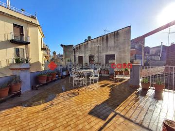 Professionecasa Paesi Etnei propone in vendita a Catania, tra Via Vittorio Emanuele e Via Garibaldi, precisamente in Via Plebiscito, ampio e luminoso appartamento di cinque vani, con terrazzo a livello, posto al secondo ed ultimo piano. Una graziosa corte condominiale conduce all'immobile, pavimentato con splendide cementine d'epoca, e che si compone di ingresso su disimpegno, un ampio salone, tre camere da letto, ulteriore camera in ammezzato, cucina abitabile e bagno. Gli spazi esterni comprendono tre balconi ed uno splendido terrazzo a livello. Il pentavani si presenta da ristrutturare, ideale per poterlo adattare alle proprie esigenze, ed è potenzialmente divisibile in due soluzioni abitative. APE in fase di rilascio.