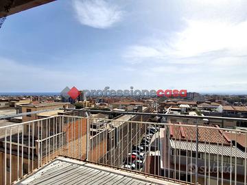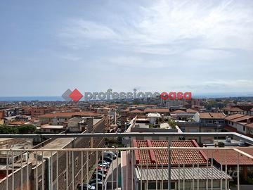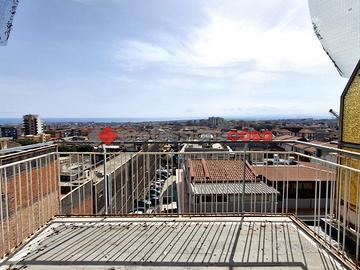 Professionecasa Paesi Etnei propone in vendita in una traversa del Viale Mario Rapisardi nei pressi della Chiesa di San Luigi, più precisamente in Via Monreale, comodo appartamento di tre vani con terrazzino panoramico vista mare, posto al settimo piano ascensorato. Il trilocale si presenta da rimodernare, con impianto idrico rifatto e predisposizione per l'installazione di climatizzatori. Gli spazi esterni comprendono un grazioso terrazzino con una splendida vista mare ed un balcone con lavanderia ed esposizione interna, che rende l'appartamento particolarmente silenzioso nonostante la posizione centrale. La superficie interna si estende per circa 90 mq, distribuiti in saletta d'ingresso, corridoio, soggiorno, due camere da letto, cucina media e bagno. Posizione strategica, servita ma silenziosa. Classe energetica F.