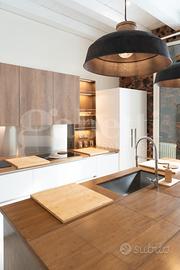 -Ampia zona living con cucina-salone, impreziosita da una stufa in ghisa a pellet