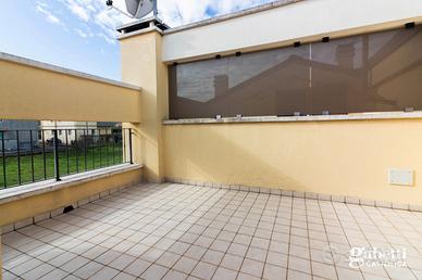 L'abitazione si apre su una luminosa zona giorno con cucina a vista, servita da ampio terrazzo di circa 28 mq, ideale per pranzi all'aperto e momenti di relax. Completano il piano due luminose camere da letto e un bagno spazioso.