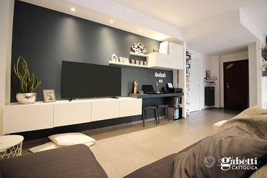 L'immobile è composto da disimpegno, luminoso soggiorno-pranzo con cucina a vista, due camere da letto, bagno e balcone.