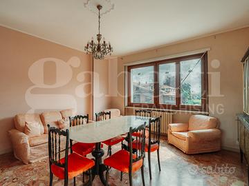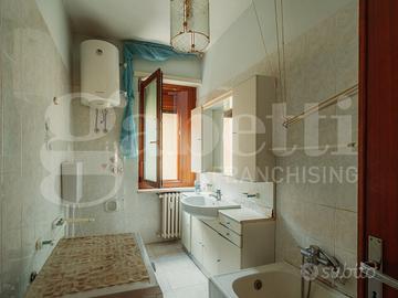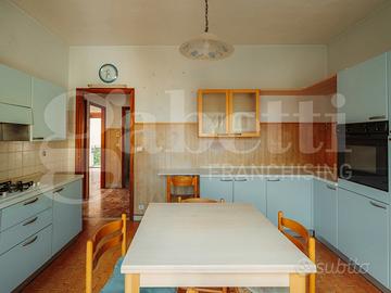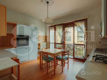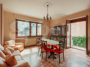 L'abitazione si sviluppa interamente su un unico livello, per una superficie commerciale di 102 mq, ben distribuiti: ingresso su corridoio centrale, cucina abitabile con affaccio sul primo balcone, tre camere spaziose, un bagno e due balconi aggiuntivi. Al piano interrato, una cantina di 13 mq completa la proprietà, utile per riporre ciò che non serve tutti i giorni.