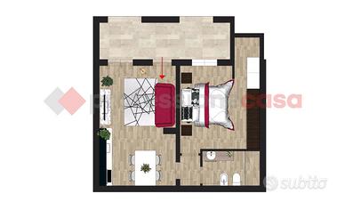 Si accede nel cortile condominiale tramite portico pedonale e carrabile; l'ingresso all'appartamento è da portico di proprietà che costituisce un utile spazio esterno. Internamente costituito da un'ampia zona soggiorno-pranzo con angolo cottura, camera matrimoniale e bagno; completamente ammobiliato. Box auto, fuori terra, prospiciente l'appartamento. Termoautonomo con condizioni d'uso simili al nuovo. Comodissimo al centro e senza alcuna barriera architettonica.