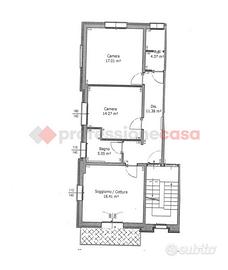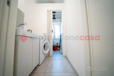 L'appartamento, posto al piano primo, è composto da ingresso, zona giorno con angolo cottura dotata di porta finestra per accedere al balcone semi-abitabile, due camere matrimoniali, bagno finestrato con doccia e ripostiglio/lavanderia.