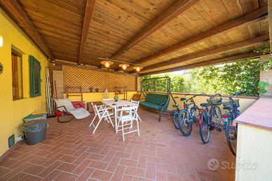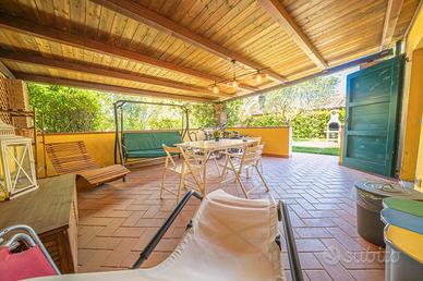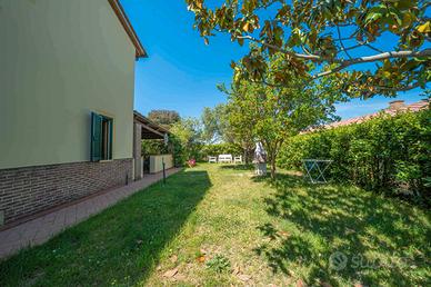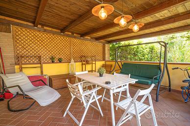 Uscendo troviamo un comodo porticato di circa 20 mq piastrellato e il giardino di 150 mq che si sviluppa su due lati dell'abitazione, nel quale passare piacevoli momenti di convivialità.