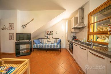 L'immobile si compone entrando di ampio vano di circa 37 mq, dove troviamo l'angolo cottura ed un letto matrimoniale, proseguendo, un piccolo disimpegno e bagno finestrato con doccia.