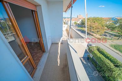 La proprietà si compone di ingresso, dal quale è possibile raggiungere tutte le stanze della proprietà disposte su un unico livello; troviamo il salotto, la sala da pranzo con cucinotto, entrambe dotate di porta finestra che collegano all'ampio balcone con esposizione a sud; le due camere - di cui una matrimoniale e l'altra media - e il bagno finestrato con box doccia.