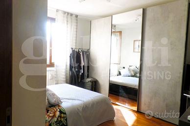 In zona Penzale laterale Via della Quercia, in palazzina parte in pietra a vista e parte intonacata, anno di costruzione 1997, disponiamo di appartamento di mq. 92 ca comm.li al piano 1 con ascensore e garage doppio con portone automatizzato di mq. 25 ca. comm.li. L'appartamento si compone di: ingresso, sala con uscita su terrazzo con tendone, cucina separata, 1 camera da letto matrimoniale, 1 camera da letto singola, 1 bagno di servizio cieco con areazione forzata, doccia e attacco lavatrice, 1 bagno finestrato con doccia. Basse spese condominiali. Riscaldamento autonomo. Attualmente occupato e disponibilità entro 31 dicembre 2026. Contattaci per una visita!!