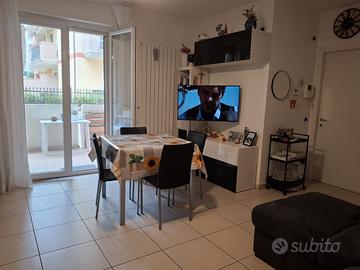Vendesi appartamento in ottime condizioni pronto da abitare ed ammobiliato sito in Via 85 strada, zona servitissima e tranquilla nei pressi della rotonda con Conad, Eurospin e farmacia S.Giacomo. (15 minuti dal centro di San Benedetto) L'appartamento, al piano primo con ascensore, in un condominio di recente costruzione, è composto da un ingresso su luminoso open space con sala e cucina. (in ottime condizioni) La zona notte è composta da una camera matrimoniale con bagno interno con doccia ,con sistema di aspirazione , un secondo bagno finestrato spazioso con vasca, una camera singola e un comodo ripostiglio. Inoltre è presente un ampio balcone come da foto. Completa la proprietà un garage spazioso. A disposizione nella zona numerosi parcheggi liberi.