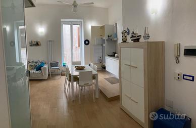 Appartamento in vendita in Gaeta situato nel caratteristico Borgo Medievale in posizione centralissima in via Annunziata , prospiciente il Lungomare e con facilità di parcheggio e accessibile a circa 1 km dalla spiaggia di Serapo raggiungibile facilmente a piedi con percorso in piano . L'appartamento è situato al primo piano di un edificio storico con soli 3 condomini , e' Stato di recente ristrutturato con gusto e si presenta in ottime condizioni . Lo stesso è composto di un ampio living con zone separate , l'angolo cottura con tavolo da pranzo , la zona tv con divano letto e zona notte separata da pareti vetrate scorrevoli che la rendono fruibile come camera da letto matrimoniale. Il living si affaccia su di un piccolo balcone con tenda da sole e con spazio utile per due poltroncine e tavolino . Dal living si accede da porta vetrata alla parte notte con ampia camera da letto con ampia finestra e con 3 posti letto utili , e bagno con finestra . L'appartamento viene venduto arredato ed accessoriato , ha una comoda vivibilità con caratteristici soffitti a volta , e ' molto areato disponendo di affacci con finestre e balcone su varie aree della casa favorendo il ricircolo di aria , soleggiato nel mattino nella parte notte e al tramonto sul balcone . E' provvisto di riscaldamento termo autonomo con caloriferi e calderina interna a gas di città , infissi in alluminio anodizzato con doppi vetri , zanzariere e veneziane .