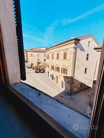Appartamento posto al secondo piano di un antico palazzo nella piazza centralissima del paese. L'immobile ha una superficie di 90 mq. circa catastali e si compone di ingresso, soggiorno con camino, cucina abitabile, servizio con doccia e spazio lavatrice, due camere, ripostiglio.