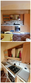 Cucina in MASSELLO con piano lavoro in MARMORESINA completa di Forno - Forno a microonde - Frigorifero - Congelatore