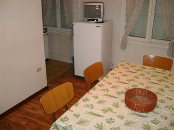 Appartamento al primo piano composto da cucina, soggiorno, 1 camera matrimoniale, bagno, due poggioli, 1 camera con due letti, lavatrice, tv. A disposizione giardino condominiale. Classe energetica B. Sono accettati cani e gatti. Per ulteriori informazioni telefonare, siamo sull'angolo fra via Matteotti e via Zara.