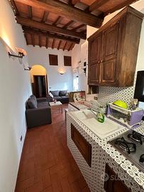 Montevarchi - Centro: Appartamento arredato situato al 4° piano di una palazzina senza ascensore. L'appartamento è composto da soggiorno con angolo cottura, camera matrimoniale, tinello e bagno finestrato. Riscaldamento autonomo, Aria condizionata. Adatto ad una/ due persone. Classe energetica F. € 450 no spese condominiali; referenze necessarie.
