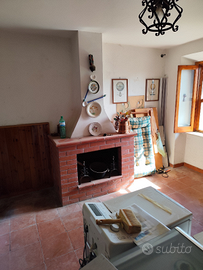 -Piano inferiore di 16 mq, composto da cucina rustica con camino e cantina.