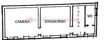 L'appartamento è composto da ingresso, soggiorno, cucinotto separato, ampia camera matrimoniale e bagno con vasca. Completa la proprietà un piccolo ripostiglio esterno.