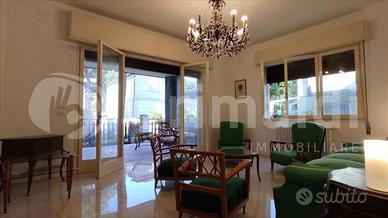 Ampio soggiorno e luminoso, arredato in stile vintage, con pavimenti in marmo lucido. Si apre direttamente sulla veranda, cucina abitabile e separata, giardino privato, veranda coperta grande metratura, pavimentata in granito rosa pregiato, ideale per mangiare all'aperto o rilassarsi, posto auto privato interno alla proprietà, ascensore condominiale. Punti di forza della posizione