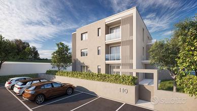 Vendiamo a Cervia, in contesto residenziale ben servito a pochi passi dal centro storico, trilocale in palazzina in fase di costruzione. L' immobile posto al piano primo, dotato di ascensore, è così composto: ingresso su soggiorno con angolo cottura e splendido balcone in cui poter pranzare comodamente all'aria aperta, disimpegno che conduce alla zona notte con due camere da letto e un bagno finestrato con box doccia. Gli appartamenti saranno dotati di tutti gli accorgimenti edilizi fini ad ottenere una Classe Energetica o superiore; disporranno quindi di riscaldamento a pavimento con pompa di calore, impianto fotovoltaico, predisposizione per aria condizionata, infissi con taglio termico ed acustico. Completano l'offerta un posto auto di proprietà. Possibilità di integrare all'acquisto un ulteriore posto auto. Consegna prevista dicembre 2025. Maggiori info in ufficio. RIF. 309-TRILO.