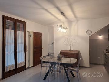 Cesena Corte Eugenio Barsanti. Casa indipendente su due livelli abbinata da un lato. Ristrutturata settembre 2025. Ampia corte privata con posto auto scoperto a chiusura telecomandato. P.T. Ripostiglio. Piano primo Ampio soggiorno/cucina open space con possibilità di ricavare la terza camera. Bagno di servizio con sanitari nuovi. Piano sottotetto con travi a vista, bagno con vasca, cameretta ospiti/studio/cabina armadio, camera matrimoniale con letto contenitore e armadio su misura. No agenzie solo privati.